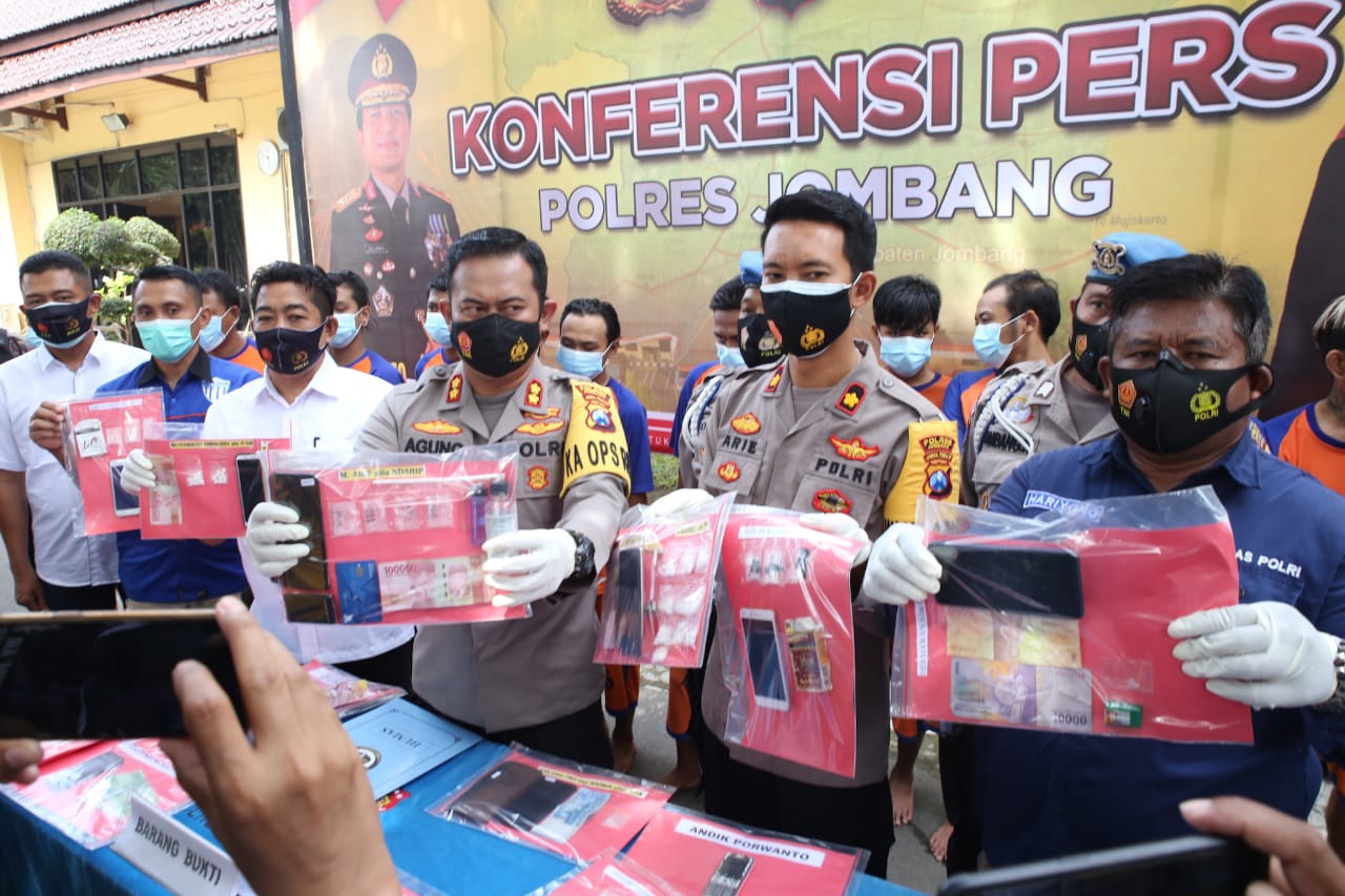 Caption Foto : Kapolres Jombang saat tunjukkan barang bukti