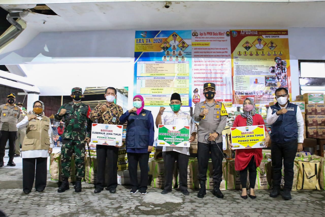 Caption Foto : Forkopimda Jatim saat menyerahkan bantuan untuk Desa yang menerapkan PPKM Mikro