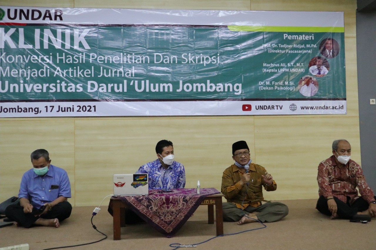 mediapetisi.net – Sebagai Lembaga Perguruan Tinggi yang selalu meningkatkan kualitas akademik, Universitas Darul ‘Ulum (UNDAR) Jombang melakukan klinik konversi hasil tesis dan skripsi bagi seluruh dosen. Diikuti oleh seluruh dosen yang berjumlah 140 dosen yang terdiri dari 18 program studi. Bertempat di Kampus UNDAR Jombang. Kamis (17/6/2021)