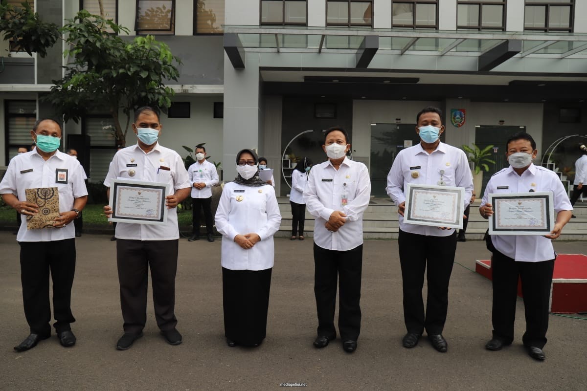 mediapetisi.net –  Apel Kerja ASN di lingkup Sekretariat Daerah Kabupaten Jombang dipimpin langsung Bupati Jombang Hj. Mundjidah Wahab.  Apel kerja kali ini bertepatan dengan Pelepasan Purna Kabag Perekonomian Setda Dra. Tri Endah Sektiwati dan Kepala Dinas Perpustakaan dan Kearsipan Kabupaten Jombang Ir. Hadi Purwantoro, M.Si. Bertempat di halaman Kantor Pemkab Jombang. Rabu (30/6/2021)