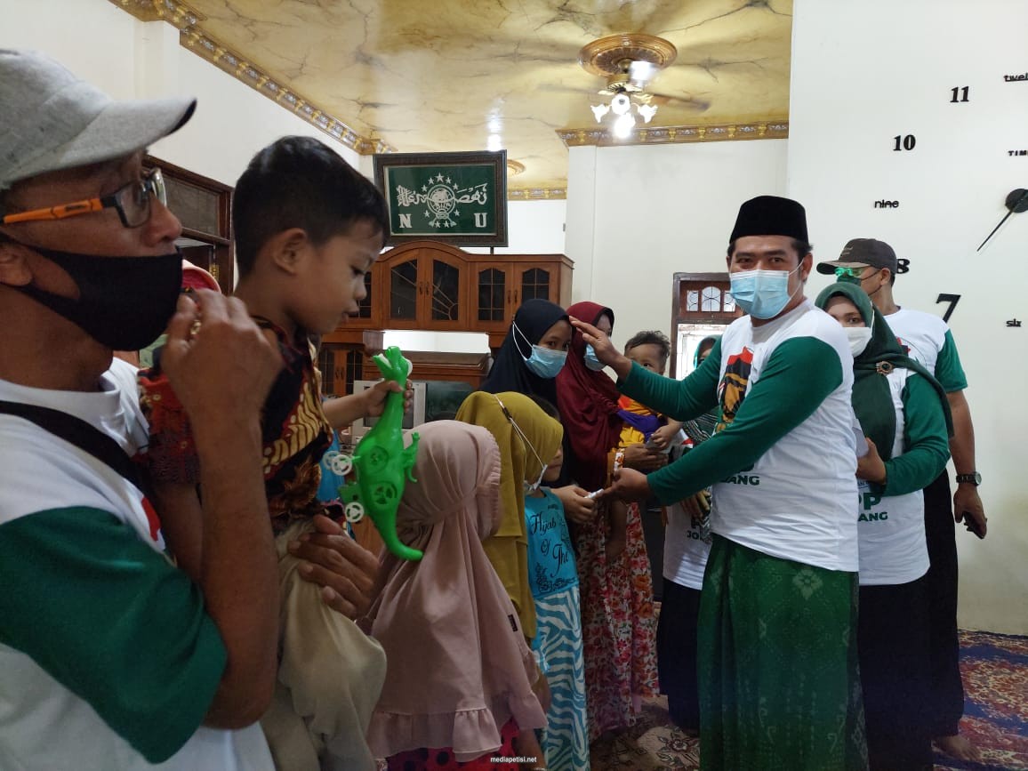 Caption Foto : Anggota DPRD Jombang dari Fraksi PPP Lutfi Kurniawan saat menyerahkan shodaqoh kepada anak yatim