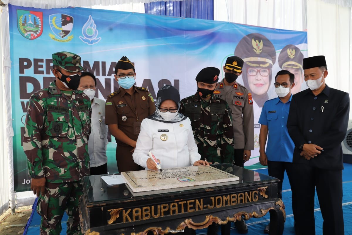 mediapetisi.net – Keberadaan alat pemurnian air di Satradar 222 Ploso Jombang diresmikan oleh Bupati Jombang, Hj. Mundjidah Wahab ditandai pemotongan pita sebagai aktifasi sistim filtrasi air dan penandatangan prasasti keberadaan sistim filtrasi air. Didampingi Dansatradar 222, Waka Polres, Perwakilan Kajari, Sekretaris Daerah, Asisten II, Kepala OPD, Camat, serta Direksi dan Manajer Perumdam Tirta Kencana Jombang. Bertempat di halaman Satradar 222 Ploso Jombang. Rabu (1/9/2021)