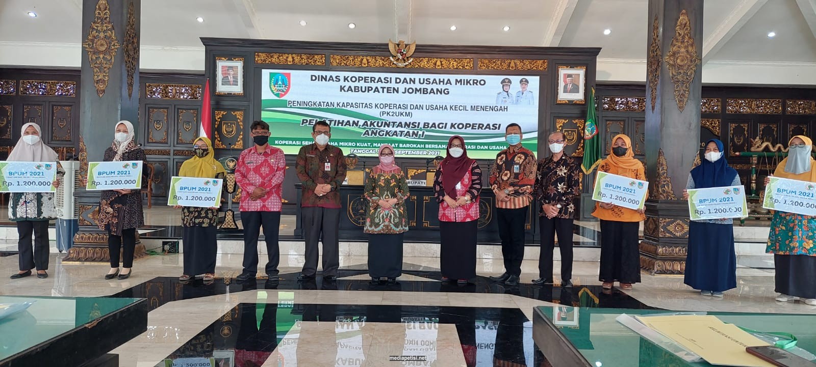 mediapetisi.net – Dinas Koperasi dan Usaha Mikro Kabupaten Jombang menggelar Pelatihan Akuntansi Bagi Koperasi Angkatan I dalam rangka peningkatan kapasitas koperasi dan usaha kecil menengah (PK2UKM) dengan tema “Koperasi sehat usaha mikro kuat, manfaat barokah bersama koperasi dan usaha mikro” dibuka oleh Bupati Jombang Mundjidah Wahab. Dihadiri Asisten 1, Sekretaris dan Jajaran Dinas Koperasi dan UM serta peserta pelatihan. Bertempat di Pendopo Kabupaten Jombang. Selasa (14/9/2021)