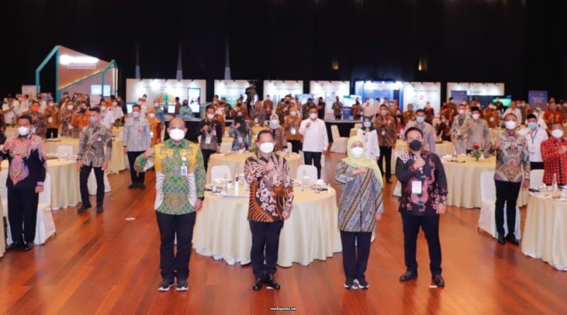 Caption Foto : Gubernur Khofifah bersama Mendagri, Dirjen Bina Administrasi Kewilayahan Kemendagri, Presdir PT. Mavic Media, Bupati/Walikota se-Jatim serta Ka. OPD lingkungan Pemprov Jatim terkait