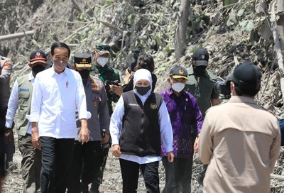 “Atas nama pemerintah dan seluruh rakyat Indonesia, saya menyampaikan duka cita mendalam atas meninggalnya korban letusan Gunung Semeru di Kabupaten Lumajang, Provinsi Jawa Timur. Saya datang ke lokasi untuk memastikan bahwa seluruh kekuatan yang kita miliki sudah berada di lapangan untuk pencarian korban yang masih ada, kemudian juga evakuasi, juga ini kita lihat untuk rencana perbaikan infrastruktur yang rusak akibat letusan Gunung Semeru ini,” terang Jokowi.