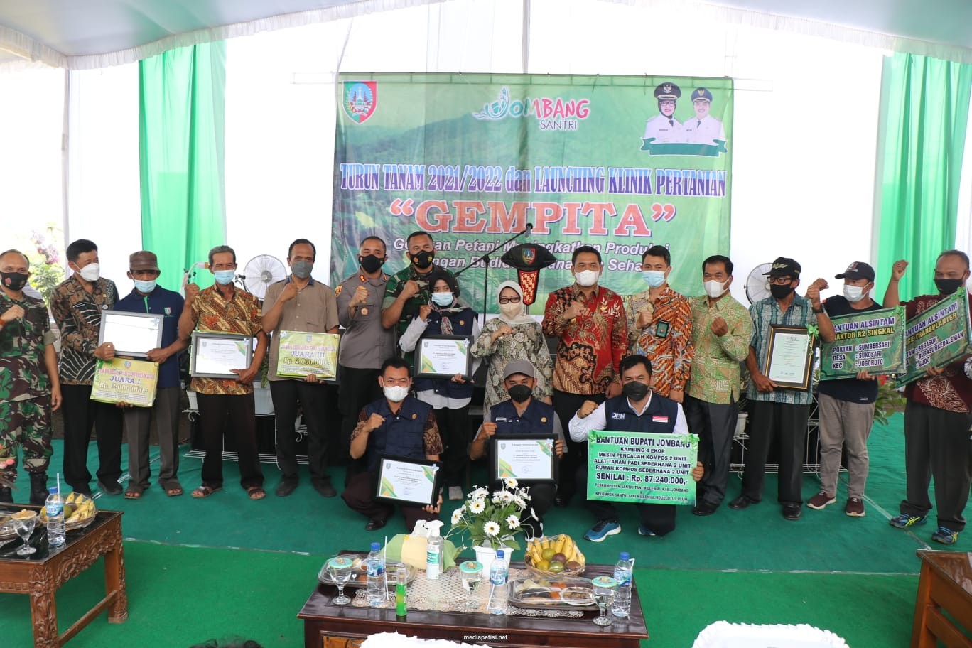 mediapetisi.net – Bupati Jombang Hj. Mundjidah Wahab di dampingi Wakil Bupati Jombang Sumrambah meresmikan Klinik Pertanian ” GEMPITA “Gerakan Petani Meningkatkan Produksi dengan Budidaya Tanaman Sehat” sekaligus meninjau Turun Tanam 2021/2022 yang diselenggarakan oleh Dinas Pertanian Kabupaten Jombang.