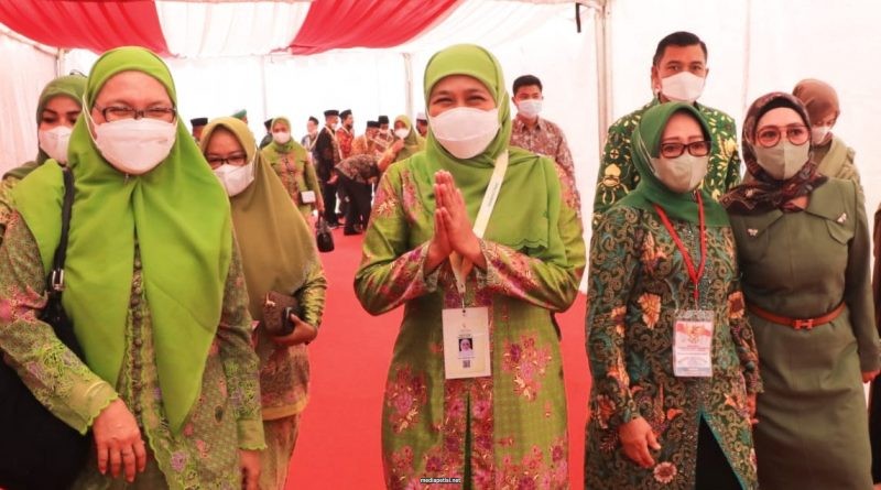 Caption Foto : Gubernur Khofifah didampingi Bupati Mundjidah saat menghadiri Muktamar NU