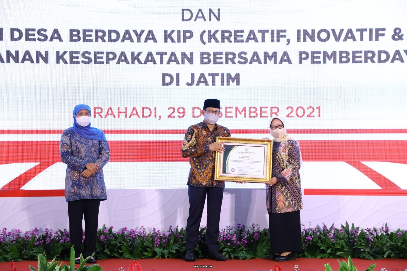 Penghargaan diserahkan langsung oleh Dr. (H.C.) Drs. Abdul Halim Iskandar, M.Pd. Menteri Desa, Pembangunan Daerah Tertinggal, dan Transmigrasi Republik Indonesia, kepada Hj. Mundjidah Wahab Bupati Jombang di Gedung Negara Grahadi Surabaya yang disaksikan langsung oleh Gubernur Jawa Khofifah Indar Parawansa. Rabu (29/12/2021)