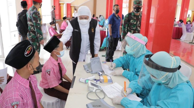 Caption Foto : Gubernur Khofifah saat meninjau siswa vaksin