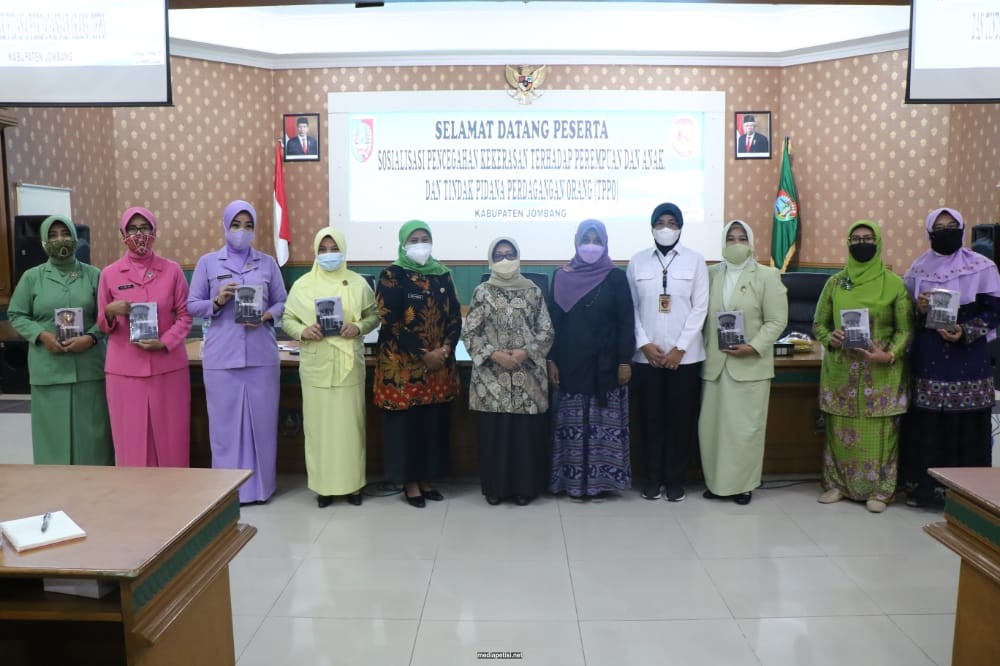Caption Foto : Bupati Jombang bersama Kepala DP3AK Jombang, Perwakilan DP3AK provinsi Jatim dan pengurus
