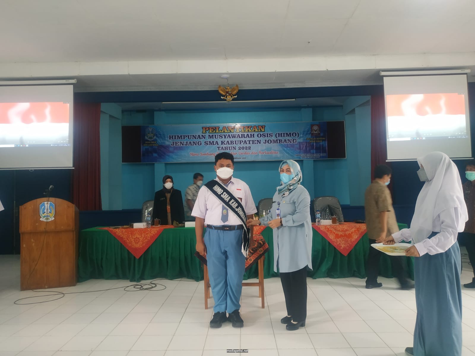 mediapetisi.net – Cabang Dinas Pendidikan Jawa Timur Wilayah Kabupaten Jombang gelar pelantikan Himpunan Musyawarah OSIS (HIMO) SMA Kabupaten Jombang tahun 2022 “HIMO Jombang Berkarakter Cerdas dan Berkualitas”. Bertempat di Gedung Auditorium SMA Negeri 3 Jombang. Jum’at (11/02/22)