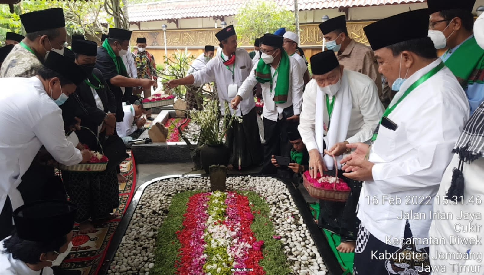 mediapetisi.net – Kunjungan Pengurus Besar Nahdlatul Ulama (PBNU) dan Ketua PWNU seluruh Indonesia dalam rangka Ziarah ke Makam para tokoh pendiri NU di wilayah Kabupaten Jombang yakni KH Abdul Wahab Chasbullah, KH. Bisri Syansuri dan KH. Hasyim Asy’ari. Kunjungan pertama di Makam KH Abdul Wahab Chasbullah atau Mbah Wahab di Kompleks Makam Keluarga Pondok Pesantren Bahrul Ulum, Tambak Beras, Jombang. Rabu (16/2/2022)
