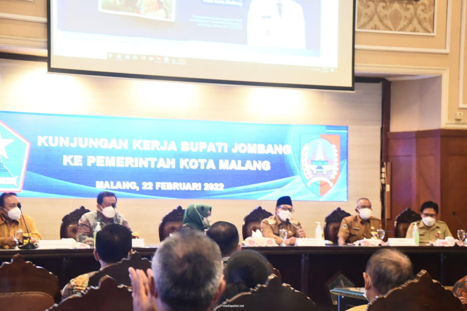 mediapetisi.net – Bupati Jombang Hj. Mundjidah Wahab bersama Sekdakab Jombang, Asisten Perekonomian dan Pembangunan, Kepala Dinas Perdagangan serta Kepala OPD melakukan kunjungan kerja ke Pemerintah Kota (Pemkot) Malang dalam rangka Revitalisasi dan Pengelolaan Pasar Daerah yang diterima langsung oleh Wali Kota Malang Sutiaji. Selasa (22/02/2022)