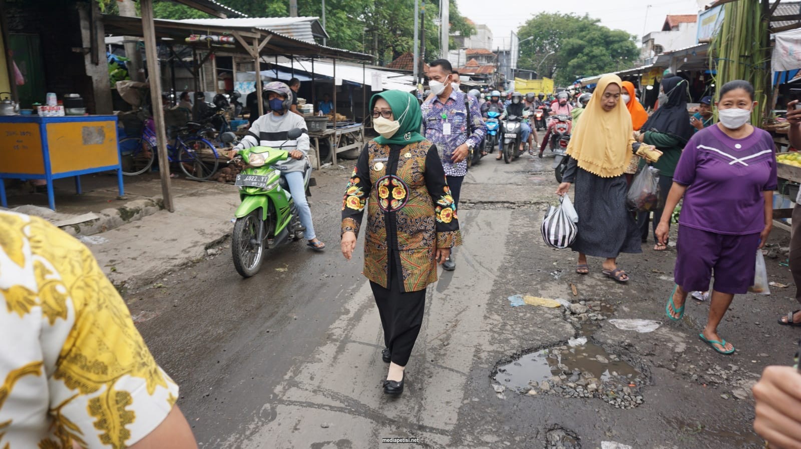 mediapetisi.net – Merespon laporan masyarakat juga hasil pantauan dari Media Sosial tentang rusaknya jalan, Bupati Jombang Hj. Mundjidah Wahab didampingi Kabag. Prokopim Agus Djauhari langsung merespon dengan cepat melihat dan memantau langsung titik kerusakan jalan yang dilaporkan. Salah satunya kerusakan jalan yang ada di belakang Pasar Legi, Citra Niaga Jombang. Kamis (10/3/2022)