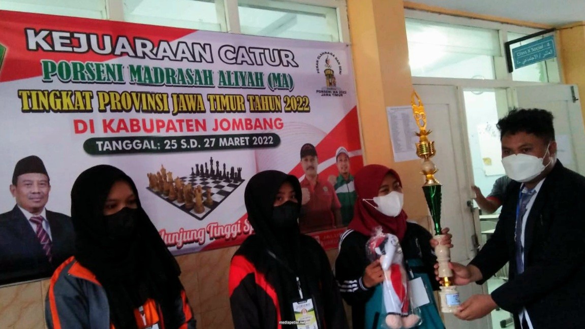 “Porseni MA tingkat Provinsi Jawa Timur cabang olahraga catur diikuti sebanyak 38 peserta putra dan 38 putri dengan tujuan nanti akan muncul atlet atlet berpotensi untuk memperkuat tim Jawa Timur di tingkat yang lebih tinggi baik itu skala nasional atau skala internasional,” terang Tondo. Sabtu (26/3/2022)