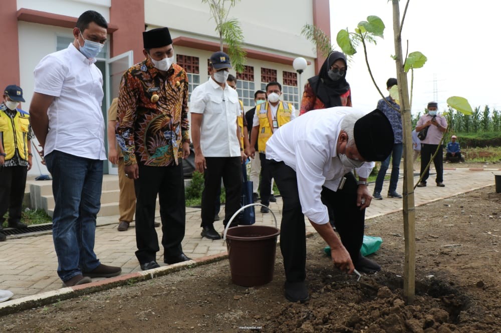 Caption Foto : Menteri PUPR Basuki saat melakukan penanaman pohon klengkeng di depan Yayasan Bhakti Bapak Emak