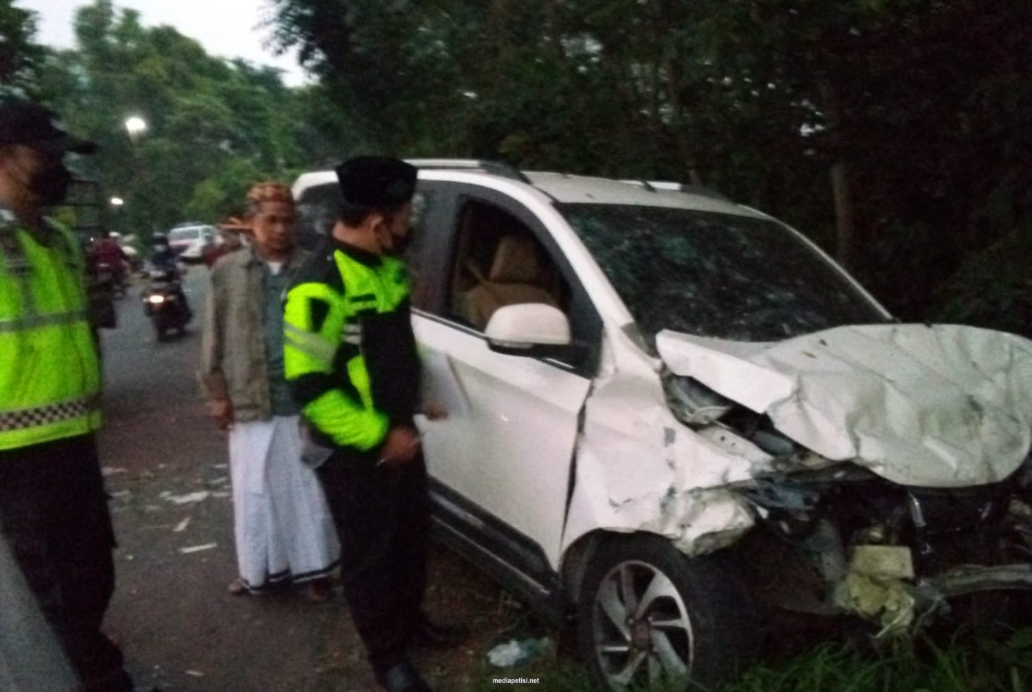 “Pengemudi kendaraan mobil Wuling No.Pol.: S 1534 RJ atas nama Agung (23) seorang swasta yang tinggal di Dusun Pandangan Desa Sumolawang Kecamatan Puri Kabupaten Mojokerto mengalami luka luka dan saat ini menjalani rawat jalan di Rumah Sakit Amalia Pare. Selain itu, di mobil Wuling No.Pol.: S 1534 RJ juga terdapat dua penumpang diantaranya Putra (20) dan Dalah (16) seorang pelajar domisili Dusun Pandangan Desa Sumolawang Kecamatan Puri Kabupaten Mojokerto yang saat ini mengalami luka luka dan sedang menjalani rawat jalan di Rumah Sakit Amalia Pare,” terangnya.