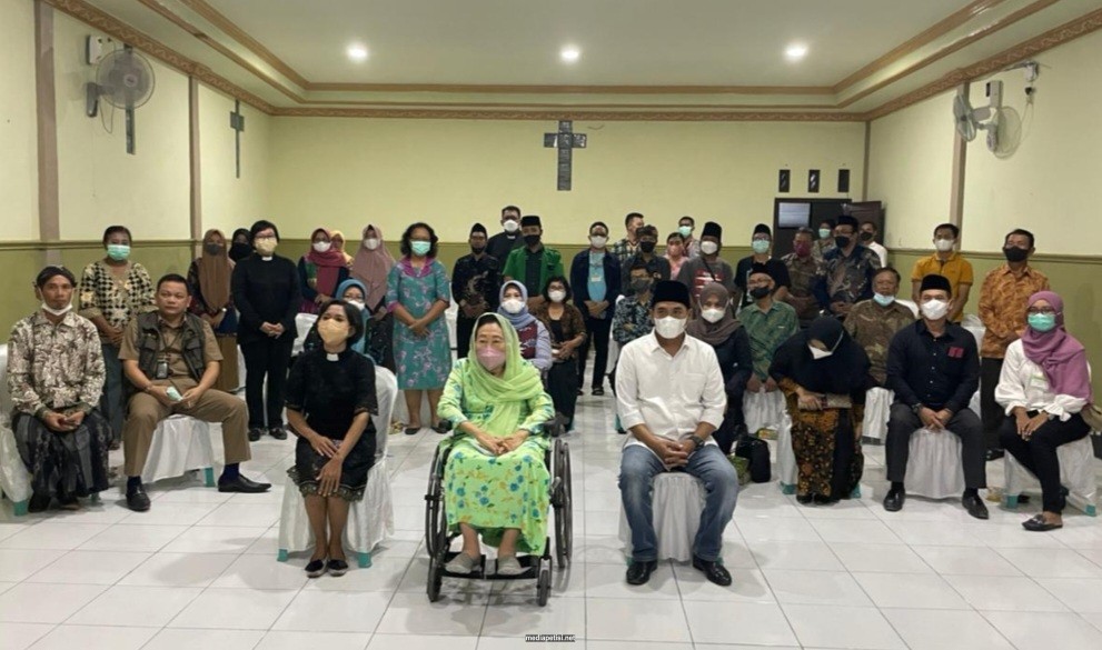 mediapetisi.net – Kunjungan Hj. Sinta Nuriyah Wahid istri Presiden Indonesia ke-4 Alm. KH. Abdurrahman Wahid di GKJW Mutersari Desa Ngrimbi Kecamatan Bareng Kabupaten Jombang disambut Wakil Bupati Jombang Sumrambah, Dansatradar 222 Ploso Yudi Amrizal, Ketua TP-PKK Wiwin Sumrambah, Forkopimcam Bareng Bareng, Ketua Gus Durian, Kades Ngrimbi, Pendeta Anggraini Mahardini Tinupikso Ketua GKJW Mutersari beserta pengurus. Senin Sore (18/4/2022)