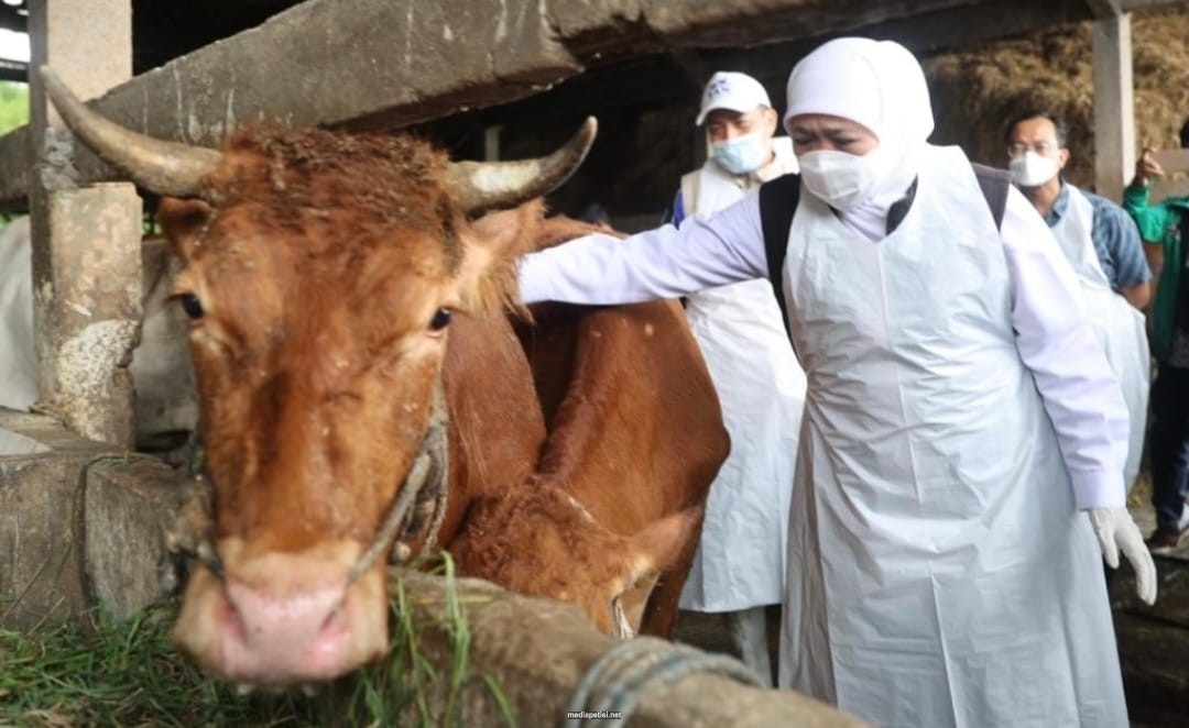Dengan mengenakan APD, Gubernur Khofifah menyaksikan tiap tahap pengobatan hewan ternak yang diberi vitamin atau obat antibiotik melalui suntikan yang akan diberikan sebanyak tiga hari sekali dalam rangka penanganan PMK pada hewan ternak. Sebagaimana diberitakan sebelumnya, PMK sendiri telah ditemukan di 4 kabupaten di Provinsi Jawa Timur. Penyakit menular ini telah menyerang sekitar 1.247 ekor ternak sapi di Kabupaten Gresik, Lamongan, Sidoarjo, dan Mojokerto.