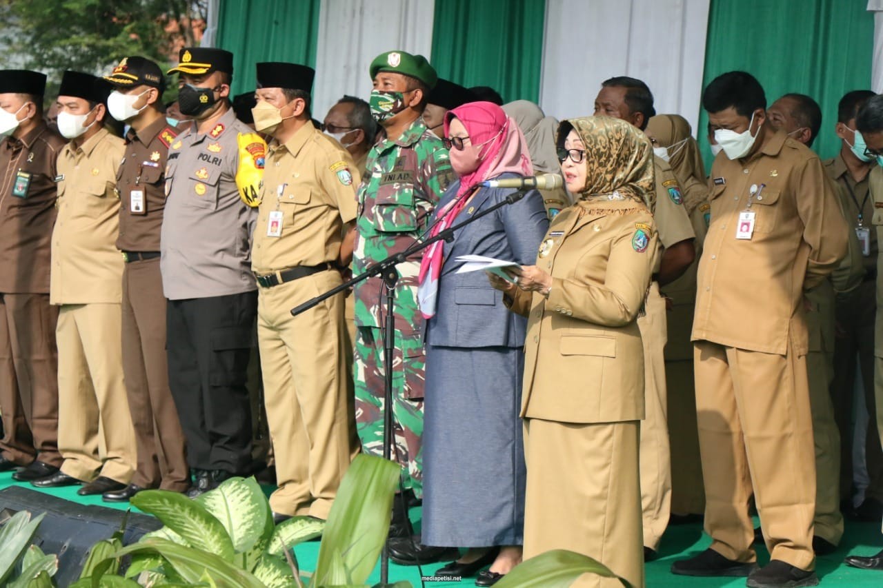 Bupati Jombang Hj. Mundjidah Wahab menyampaikan ucapan selamat Idul Fitri 1443 Hijriyah kepada seluruh peserta apel. Sebagai manusia tentunya kami tidak lepas dari salah dan khilaf, untuk itu dengan segala kerendahan hati, kami mengucapkan minal aidzin wal faidzin, mohon maaf lahir dan batin kepada seluruh ASN dan non ASN Pemkab Jombang.