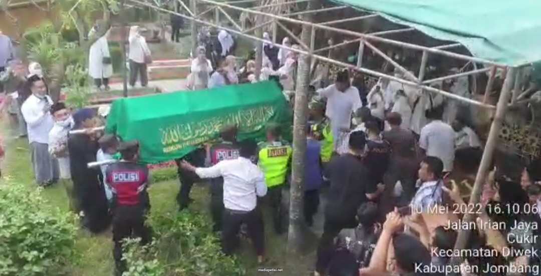 mediapetisi.net – Jenazah almarhumah Nyai Hj. Lily Khodijah Wahid dimakamkan tepatnya di sebelah selatan Joglo, yang ada di kompleks pemakaman Ponpes Tebuireng Jombang. Pada proses pemakaman tersebut, Dzurriyah Bani Hasyim, Gubernur Jatim Khofifah Indar Parawansa, Bupati Jombang Hj. Mundjidah Wahab, KH. Muwafiq dan Para Kyai yang mengantar ke tempat peristirahatan terakhir. Selasa Sore (10/5/2022)