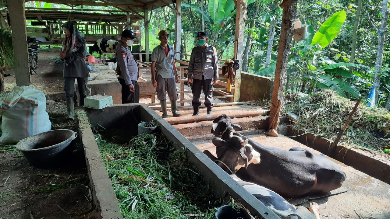 mediapetisi.net – Unit Tipiter dan Intelkam Polres Jombang, Polsek Wonosalam serta Dinas Peternakan Kabupaten Jombang melakukan Pengecekan hewan ternak sapi potong dan sapi perah di Desa Panglungan dan Desa Sumberjo, Kecamatan Wonosalam Kabupaten Jombang. Rabu (11/5/2022)