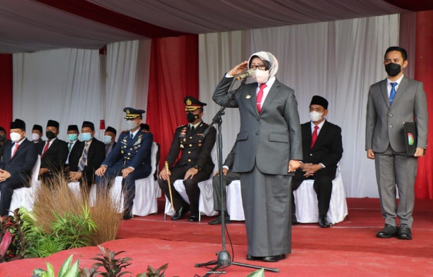 Caption Foto : Bupati Jombang saat menjadi Inspektur Upacara