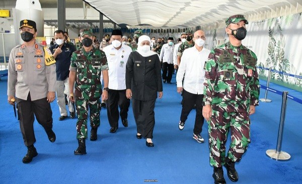 Caption Foto : Forkopimda Jatim saat meninjau Bandara Juanda