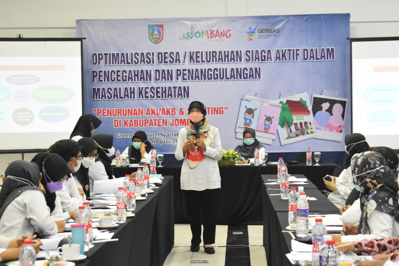 mediapetisi.net – Pemerintah Kabupaten Jombang melalui Dinas Kesehatan melaksanakan Optimalisasi Desa/Kelurahan siaga aktif dalam pencegahan dan penanggulangan masalah kesehatan “Penurunan AKI/AKB dan Stunting” di Kabupaten Jombang 2022. Diikuti Promkes Puskesmas, Kepala desa, bidan desa, kader desa siaga di 11 Puskesmas, 11 desa lokus stunting, Lintas program (KGM, kesling kesjaor, P2PM, survim) dan Lintas Sektor (DPMD, DPPKB PPPA). Bertempat di Green Red Syariah Hotel Peterongan Jombang. Rabu (8/6/2022)