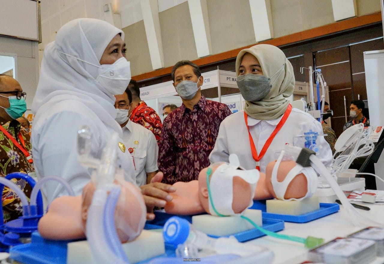 Selain itu, di kesempatan tersebut, Khofifah juga menyempatkan diri mengunjungi pameran alat kesehatan yang diikuti oleh 76 perusahaan nasional. Adanya produk dalam negeri yang dipamerkan menjadi bagian penting untuk bisa mengukur sejauh mana arahan Presiden RI Joko Widodo sudah bisa breakdown dalam teknologi kesehatan, terutama dengan berbagai alat kesehatan yang dibutuhkan dalam pelayanan di rumah sakit.