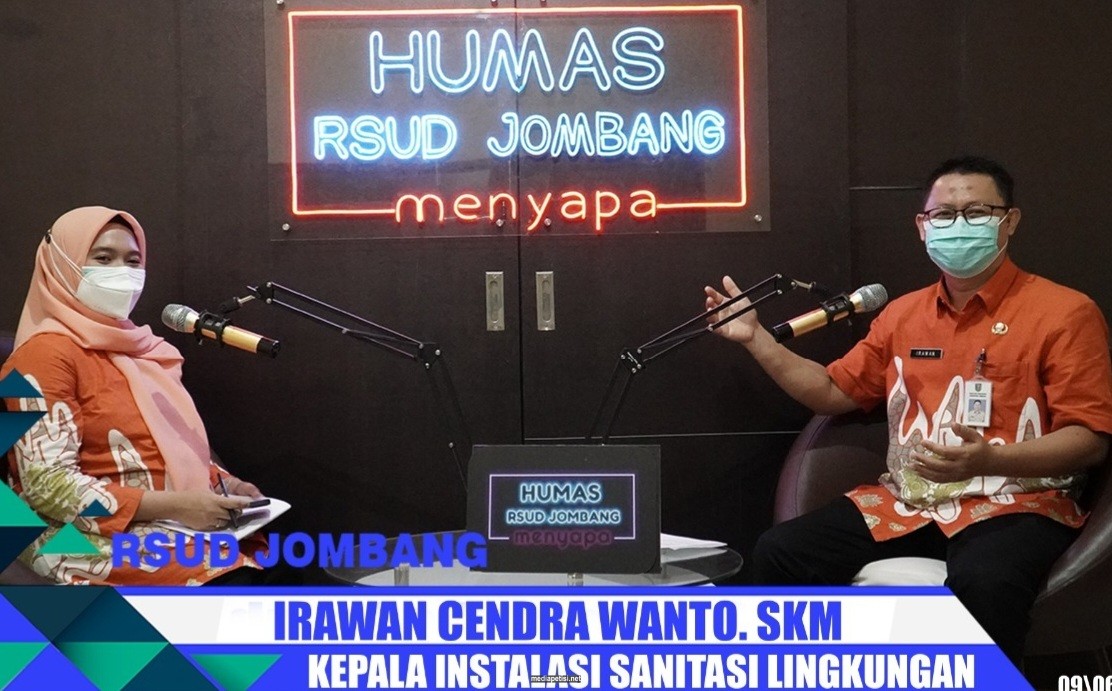 Caption Foto : Kepala Instalasi Sanitasi Lingkungan RSUD Jombang Irawan saat berbincang dalam Humas RSUD Menyapa