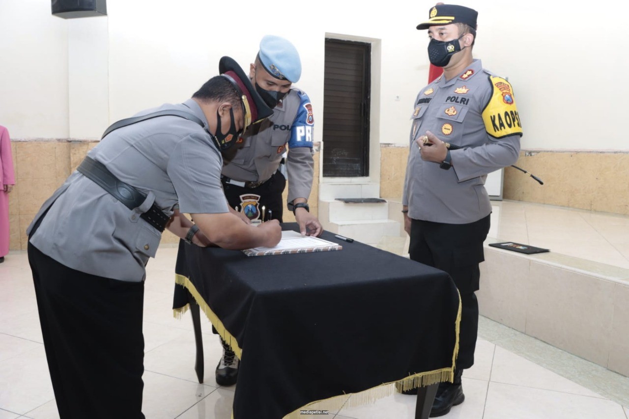 Kapolres juga menekankan kepada Pejabat baru bahwa sebagai pimpinan Polri harus selalu mengarahkan anggotanya serta tetap melakukan pengawasan dan arahan pada saat anggota akan bertugas bertugas di lapangan.