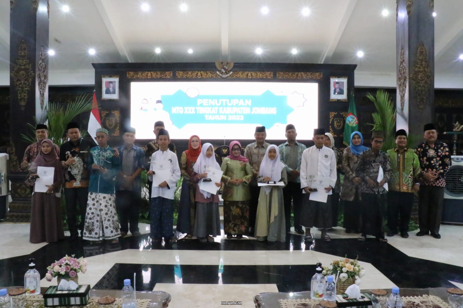 mediapetisi.net – Musabaqoh Tilawatil Qur’an (MTQ) Ke XXX Tingkat Kabupaten Jombang telah selesai, Bupati Jombang Hj. Mundjidah Wahab secara resmi telah menyatakan selesai dan menutup agenda yang telah dilaksanakan sejak tanggal (22 – 25/8/2022). Dihadiri Anggota Komisi IV DPR RI Ema Umiyatul, Forkopimda, Sekda Agus Purnomo, Staf Ahli, Asisten, Kepala OPD, Kepala Kemenag, Ketua TP-PKK Wiwin Sumrambah, Ketua DWP Lilik Agus Purnomo. Bertempat di Pendopo Kabupaten Jombang. Kamis malam (25/8/2022)