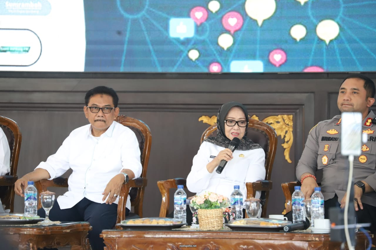mediapetisi.net – Pemerintah Kabupaten Jombang melalui Dinas Komunikasi dan Informatika gelar Meet up and share social media influencer, Kopilaborasi pegiat medsos dalam rangka menunjang publikasi pemerintah daerah dan potensi kabupaten Jombang tahun 2022. Diikuti oleh 75 peserta pengelola atau admin media sosial di Kabupaten Jombang. Dihadiri Bupati Jombang, Hj. Mundjidah Wahab, Ketua DPRD H. Mas’ud Zuremi, Kapolres Nurhidayat, Kepala OPD dan narasumber dari Asosiasi Media Siber Indonesia (AMSI) . Bertempat di Pendopo Kabupaten Jombang. Rabu (28/09/22)
