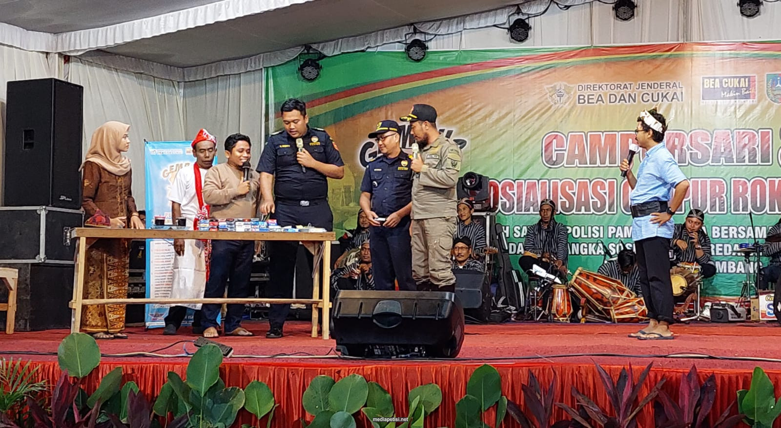 mediapetisi.net – Sosialisasi Gempur Rokok Ilegal di kabupaten Jombang dikemas pertunjukan rakyat berupa Campursari dengan cerita Besutan mengambil tema Perundang – undangan Rokok ilegal digelar oleh Satuan Polisi Pamong Praja bersama Bea Cukai Kediri. dengan narasumber dari Fungsional Pemeriksa Bea Cukai Kediri Rudi Suprianto. Bertempat di UPT sub Terminal Ngoro. Rabu malam (5/10/2022)