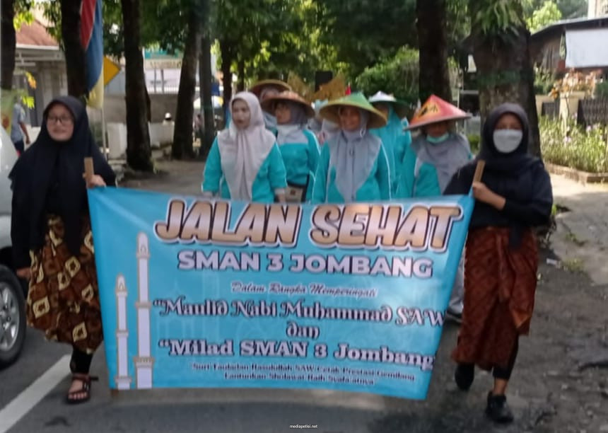 mediapetisi.net – Peringati Milad ke 31 dan Maulid Nabi Muhammad SAW, SMA Negeri 3 Jombang gelar bazar, lomba islami dan jalan sehat yang diikuti oleh seluruh siswa SMA Negeri 3 Jombang. Turut hadir Plt. Kepala Sekolah SMA Negeri 3 Jombang Zainal Fatoni serta segenap jajaran guru SMA Negeri 3 Jombang. Bertempat di SMA Negeri 3 Jombang. Kamis (06/10/22)
