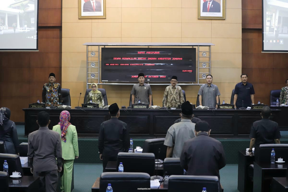 mediapetisi.net – Rapat Paripurna DPRD Kabupaten Jombang Penyampaian Nota Penjelasan Dewan Perwakilan Rakyat Daerah Kabupaten Jombang tentang 2 (dua) Raperda Hak inisiatif DPRD Kabupaten Jombang Tahun 2022. Dihadiri Bupati dan Wakil Bupati Jombang, Forkopimda, Pimpinan dan Anggota DPRD, Asisten, Staf Ahli, Kepala OPD, Direktur BUMD, Kabag. dan Camat se Kabuoaten Jombang. Bertempat di ruang Paripurna Kantor DPRD Jombang. Kamis (27/10/2022)