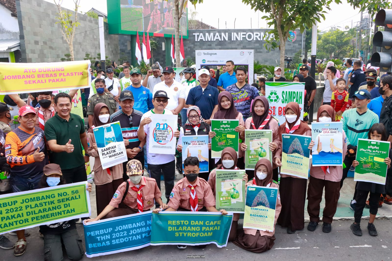 Usai peresmian Taman Informasi dilanjutkan Kampanye Pembatasan Plastik Sekali Pakai oleh Dinas Lingkungan Hidup Kabupaten Jombang sesuai Perbup Jombang No 56 tahun 2022 tentang Pembatasan Penggunaan Plastik Sekali Pakai di Kabupaten Jombang.