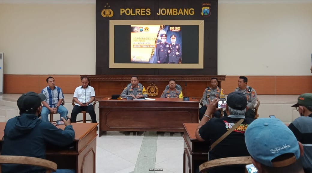 mediapetisi.net – Polres Jombang gelar konferensi pers akhir tahun dan Anev Kamtibmas tahun 2022. Dipimpin oleh Kapolres Jombang, AKBP Moh. Nurhidayat. Bertempat di Graha Bhakti Bhayangkara. Jum’at sore ( 30/12/22)