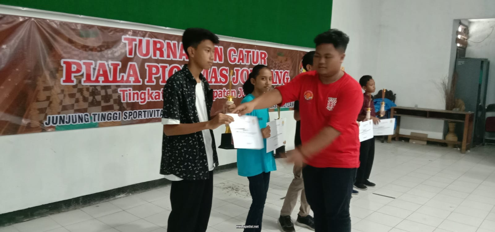 mediapetisi.net – SMP Negeri 1 Jombang berhasil membuktikan sebagai sekolah para juara baik akademik maupin non akademik. Kali ini SMP Negeri 1 Jombang raih prestasi dalam bidang olahraga diantaranya Kempo, Futsal, dan Catur yang dilaksanakan di aula 1 kantor Dinas Pendidikan dan Kebudayaan Kabupaten Jombang.