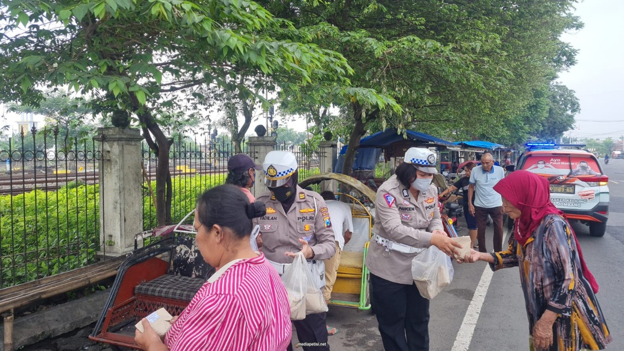 “Selama pandemi ini, banyak masyarakat yang terdampak. Dari situ, kami membeli makanan berupa nasi bungkus dari Pedagang Kaki lima untuk dibagikan kepada orang-orang yang membutuhkan seperti pengayuh becak, juru parkir, pemulung dan masyarakat yang melintas,” kata Iptu Yuger. Selasa (24/1/2023)