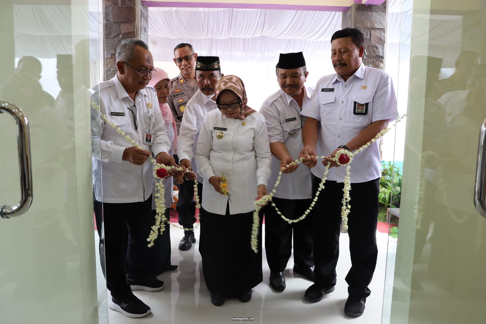 Caption Foto : Bupati Mundjidah saat meresmikan Puskeswan ditandai dengan pemotongan roncean melati dan meninjau setiap ruangan yang ada.