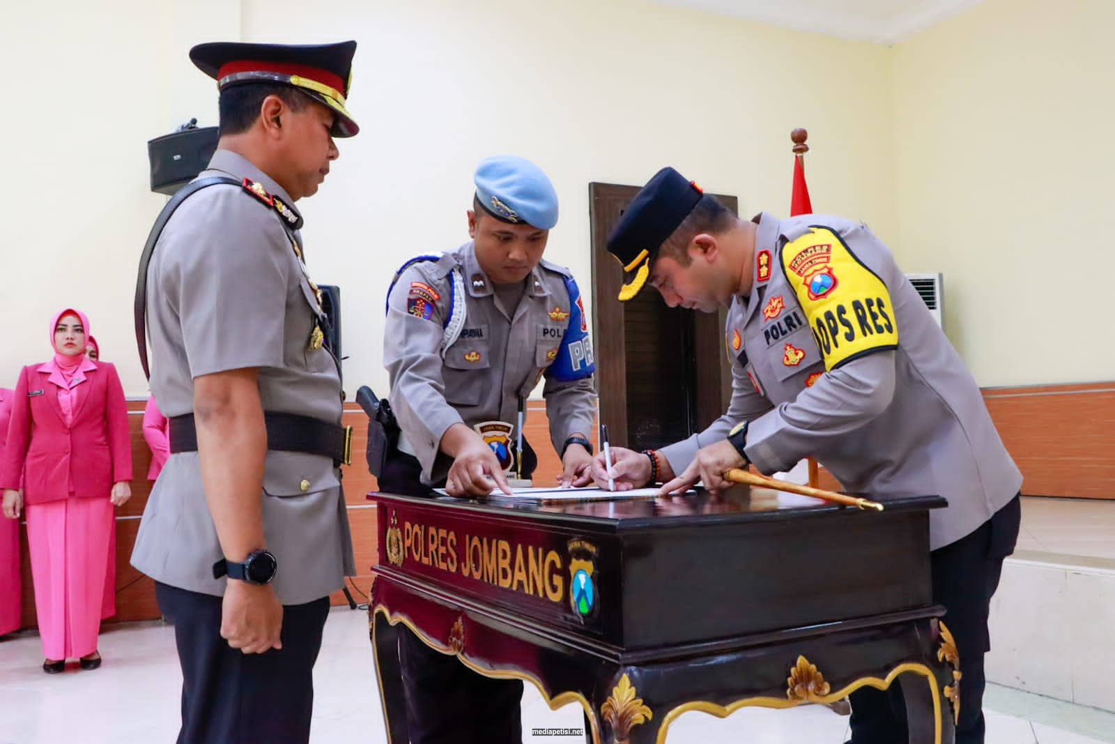 Caption Foto : Kapolres Jombang saat pimpin Sertijab