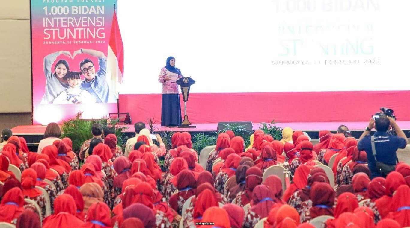 Hal itu disampaikan Gubernur Khofifah saat memberikan pengarahan dalam Program Edukasi 1.000 Bidan dan Intervensi Stunting bersama Badan Kependudukan dan Keluarga Berencana Nasional (BKKBN) Republik Indonesia, di Dyandra Convention Center Surabaya. Sabtu (11/2/2023)