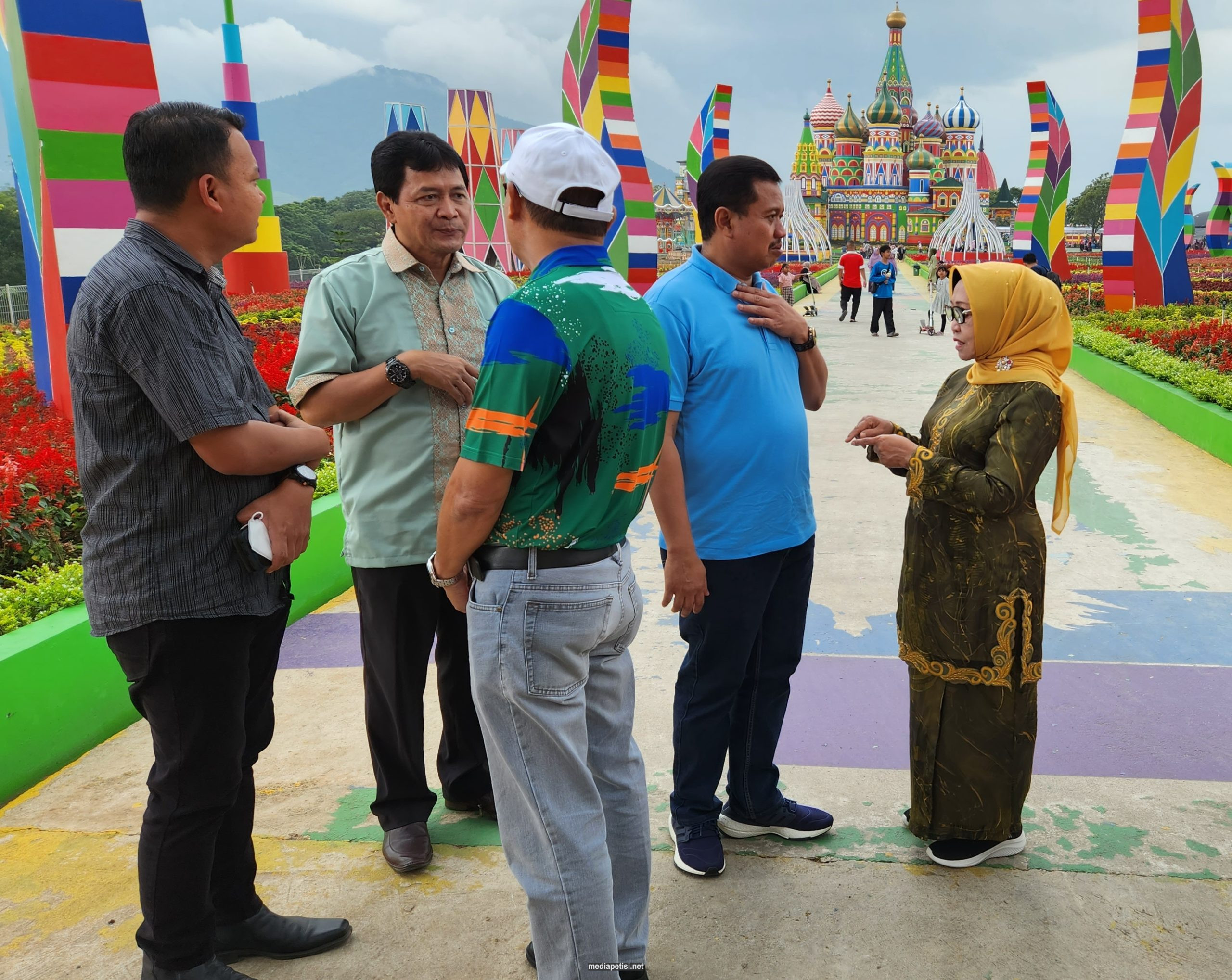 Saat mengunjungi langsung ke lokasi destinasi wisata hasil kolaborasi Pemerintah Kabupaten Sumedang dengan pihak swasta tersebut, Bupati Sumedang didampingi langsung investor Jans Park (Jatinangor Flower Park), Edi Purwanto.