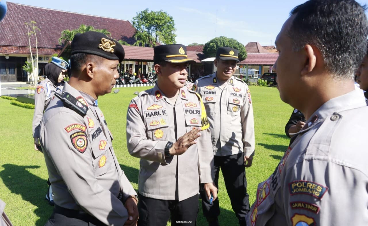 “Saya cek langsung kerapian dan sikap tampang personel Polres Jombang. Satu persatu anggota di cek kelengkapan surat, kerapian rambut, seragam, maupun kebersihan sepatu,” terang Hari.