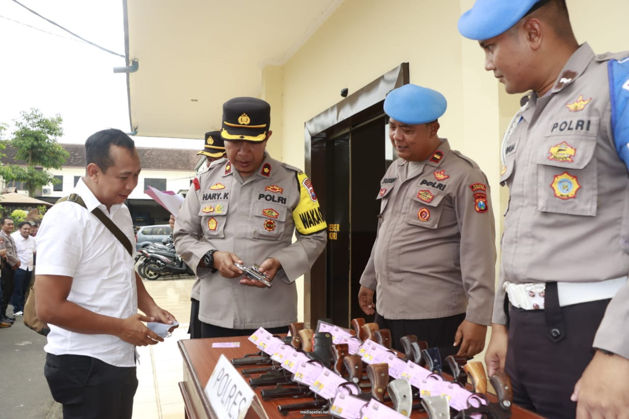 “Berdasarkan hasil pemeriksaan, dari 88 personel yang dipinjampakaikan senjata, ditemukan 12 pucuk senpi kurang bersih dan 1 pucuk senpi dikembalikan karena personelnya pindah fungsi dari reserse ke sabhara,” ujar Kompol Hari.