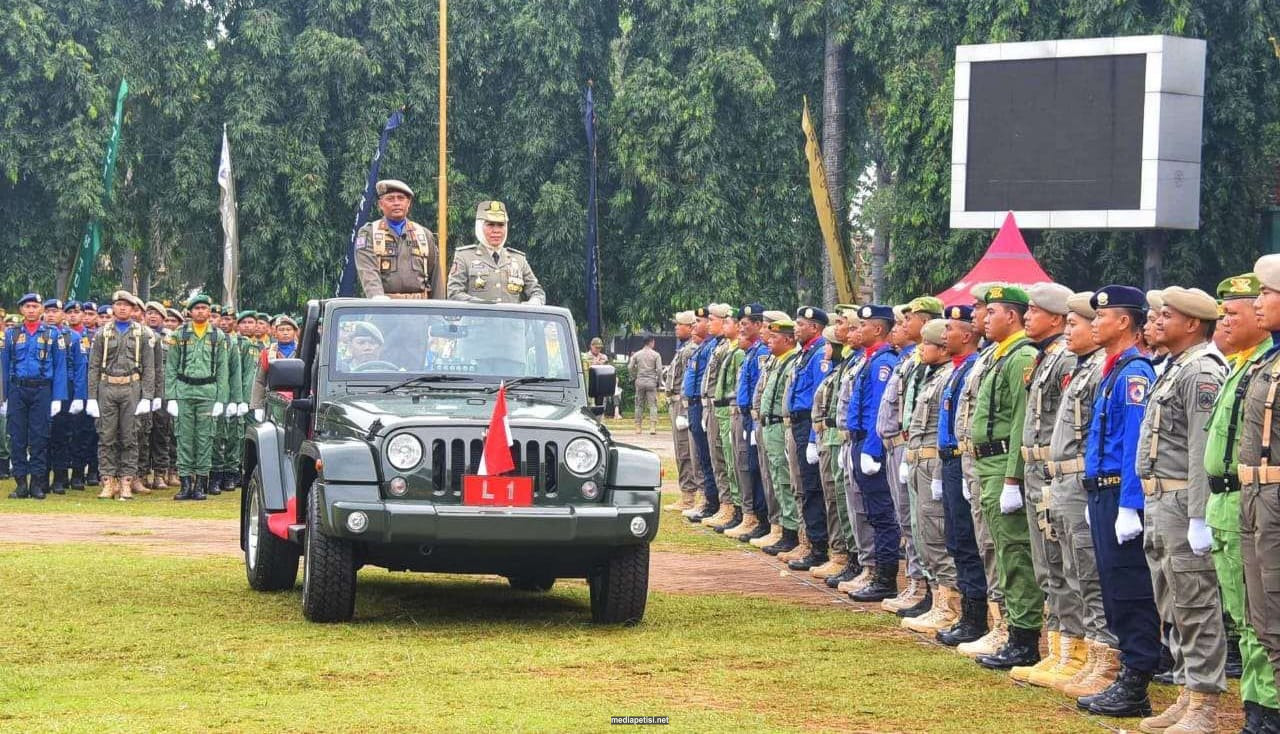 mediapetisi.net – Gubernur Jawa Timur Khofifah Indar Parawansa memberi sejumlah pesan saat menjadi inspektur di upacara Gelar Pasukan dalam rangka peringatan HUT ke-73 Satuan Polisi Pamong Praja (Satpol PP), HUT ke-61 Satuan Perlindungan Masyarakat (Satlinmas) dan HUT ke-104 Pemadam Kebakaran dan Penyelamatan Tahun 2023 di Alun-Alun Kabupaten Tuban. Rabu (8/3/2023).