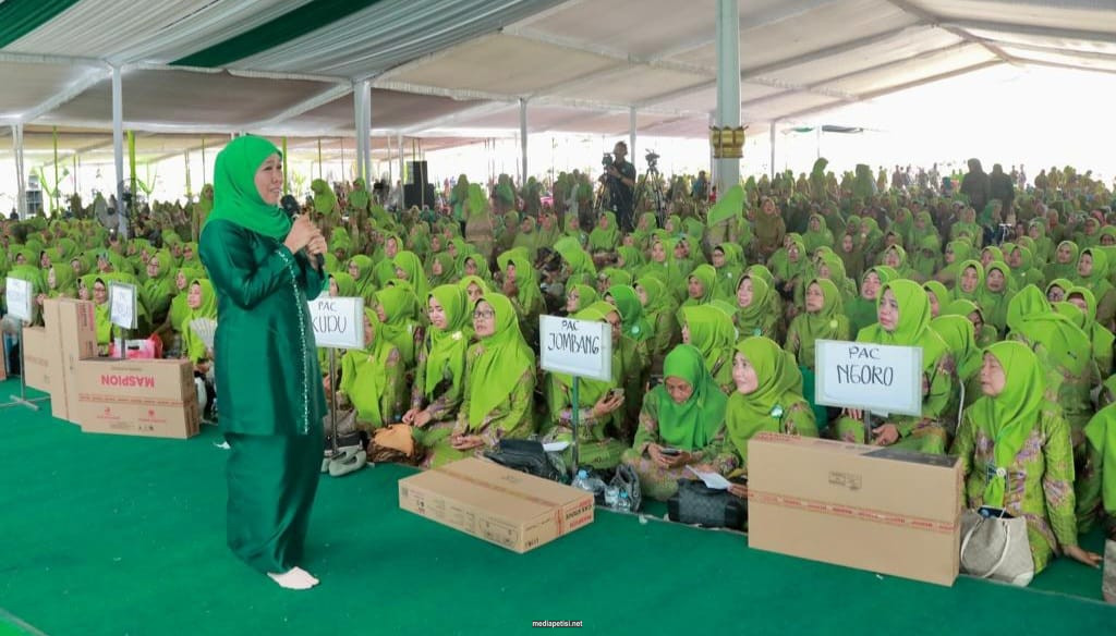 mediapetisi.net – Gubernur Jawa Timur Khofifah Indar Parawansa menghadiri Tahlil Kubro dan Pelantikan Pengurus Cabang (PC) Muslimat NU Jombang masa khidmat 2022-2027 dan Pengurus Anak Cabang (PAC) Muslimat NU se-Kabupaten Jombang masa khidmat 2021-2026. Minggu (12/3/2023)