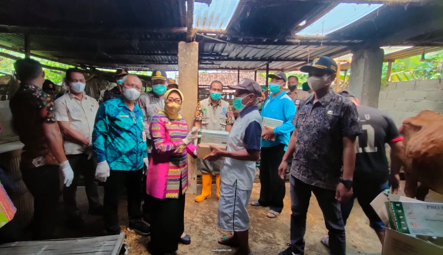 Caption Foto : Bupati didampingi Asisten 2 dan Kepala Dinas Peternakan saat melihat langsung kondisi sapi yang teekena virus